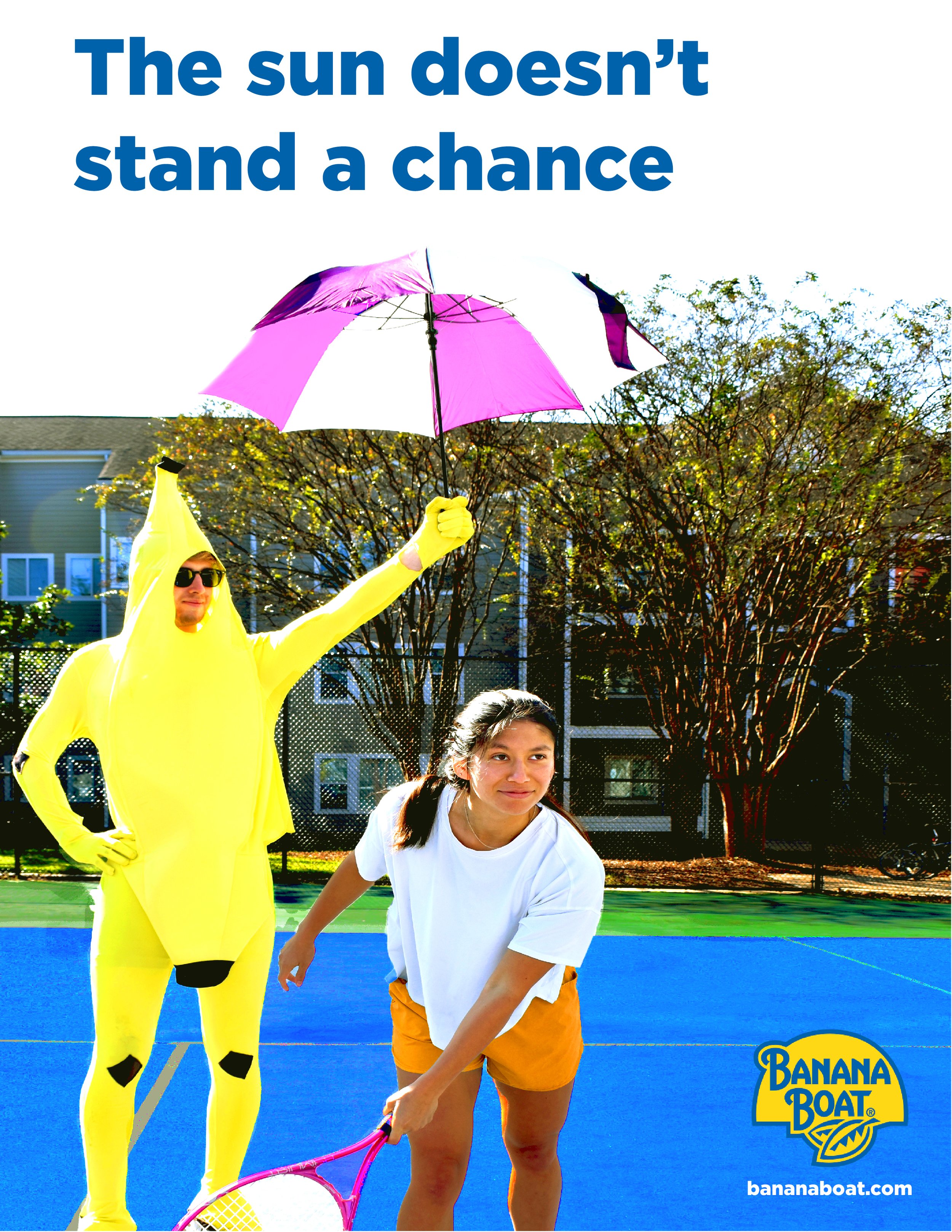 An ad campaign collaboration with Genesis Guzman and Ash Martin for Banana Boat Sunscreen. While pushing saturation, the concept was to show how effective the sunscreen can be, like having your own personal UAV body guard.